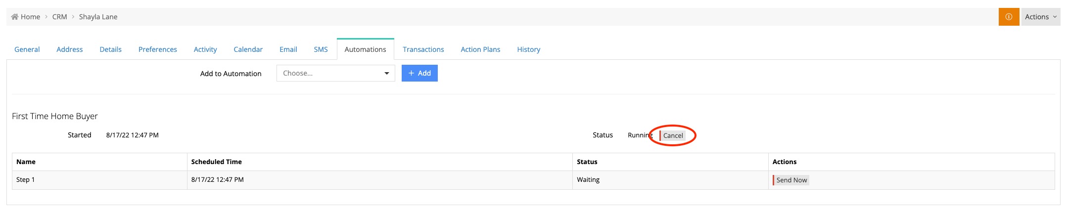 Click the cancel button next to Status to cancel the automation.