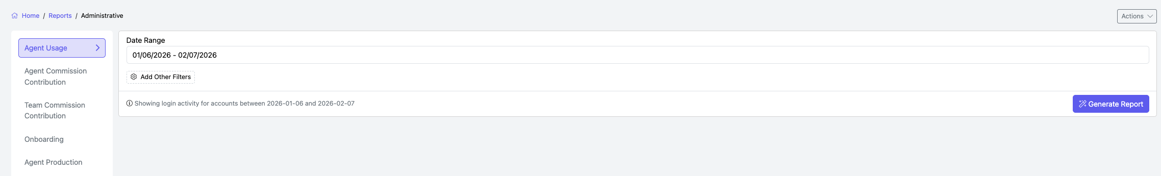 To access the Administrative report, navigate to Reports → Administrative in the left sidebar.