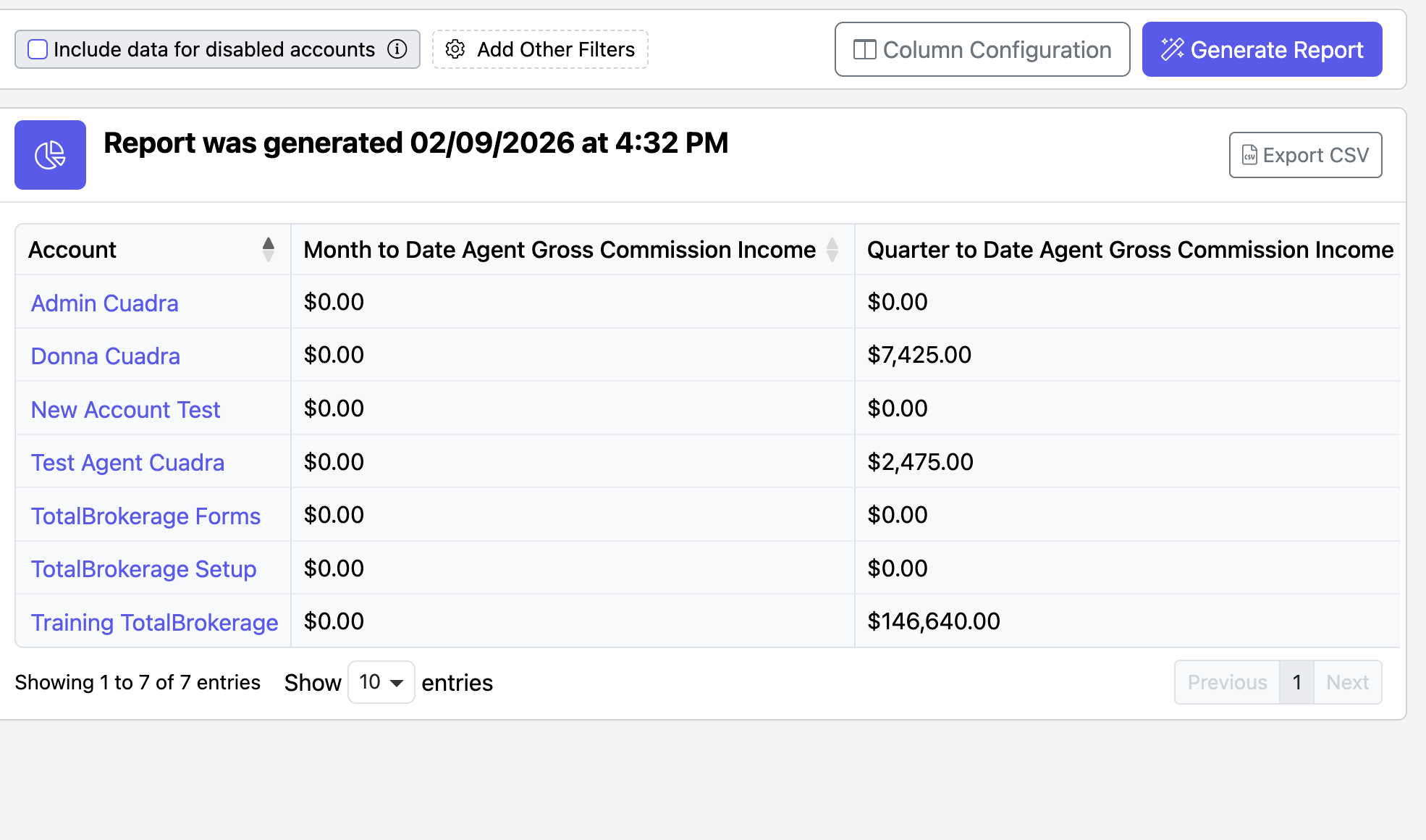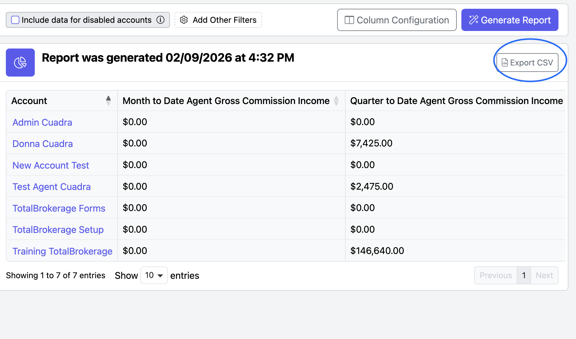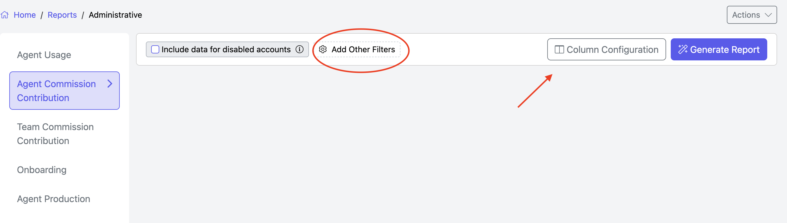 You can customize your report to include specific offices, teams, or agent accounts by clicking Add Other Filters.