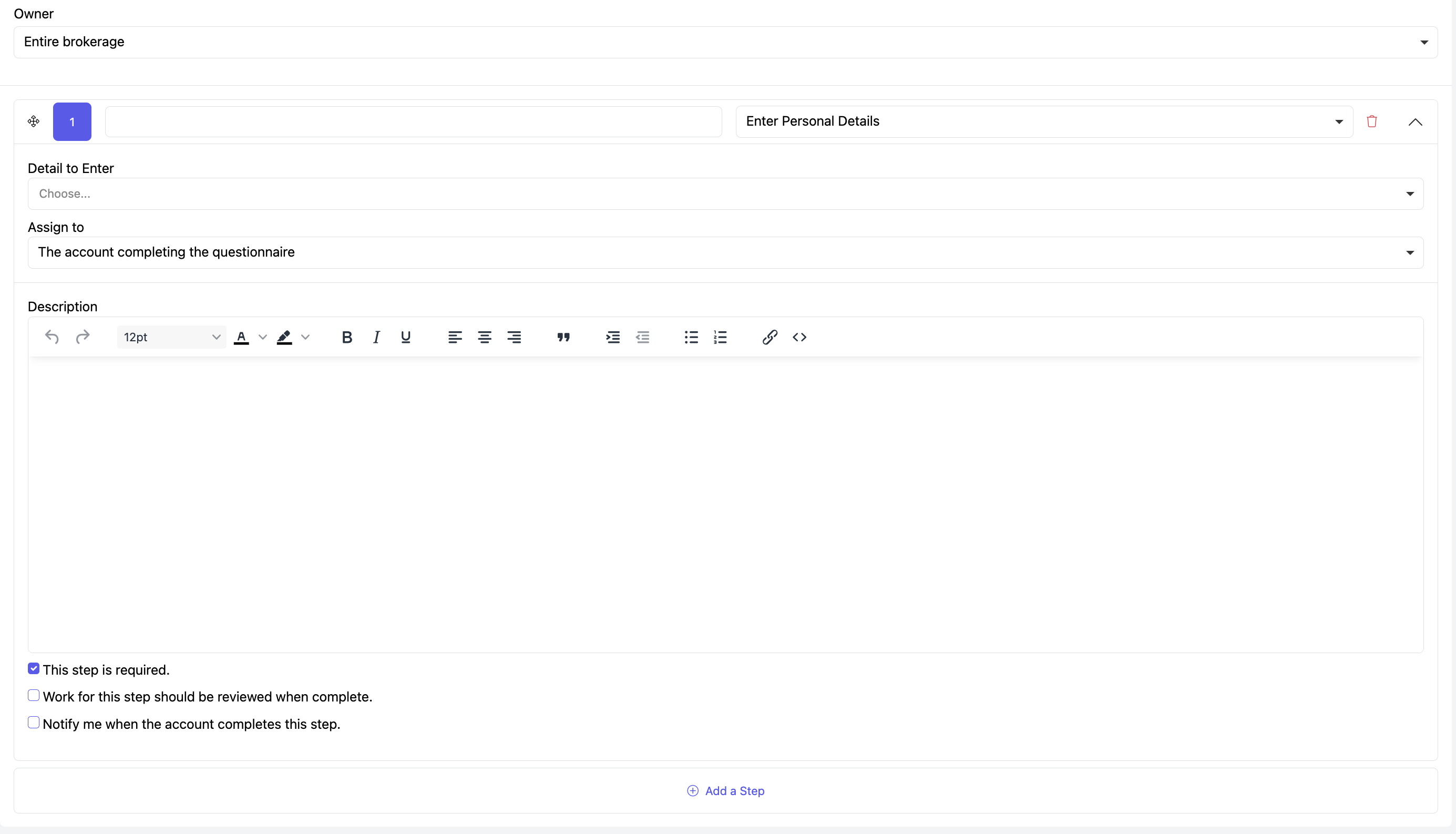 2. Work for the step should be reviewed when complete: This makes the step have to be reviewed by the person who initiated the onboarding before it is marked as completed.