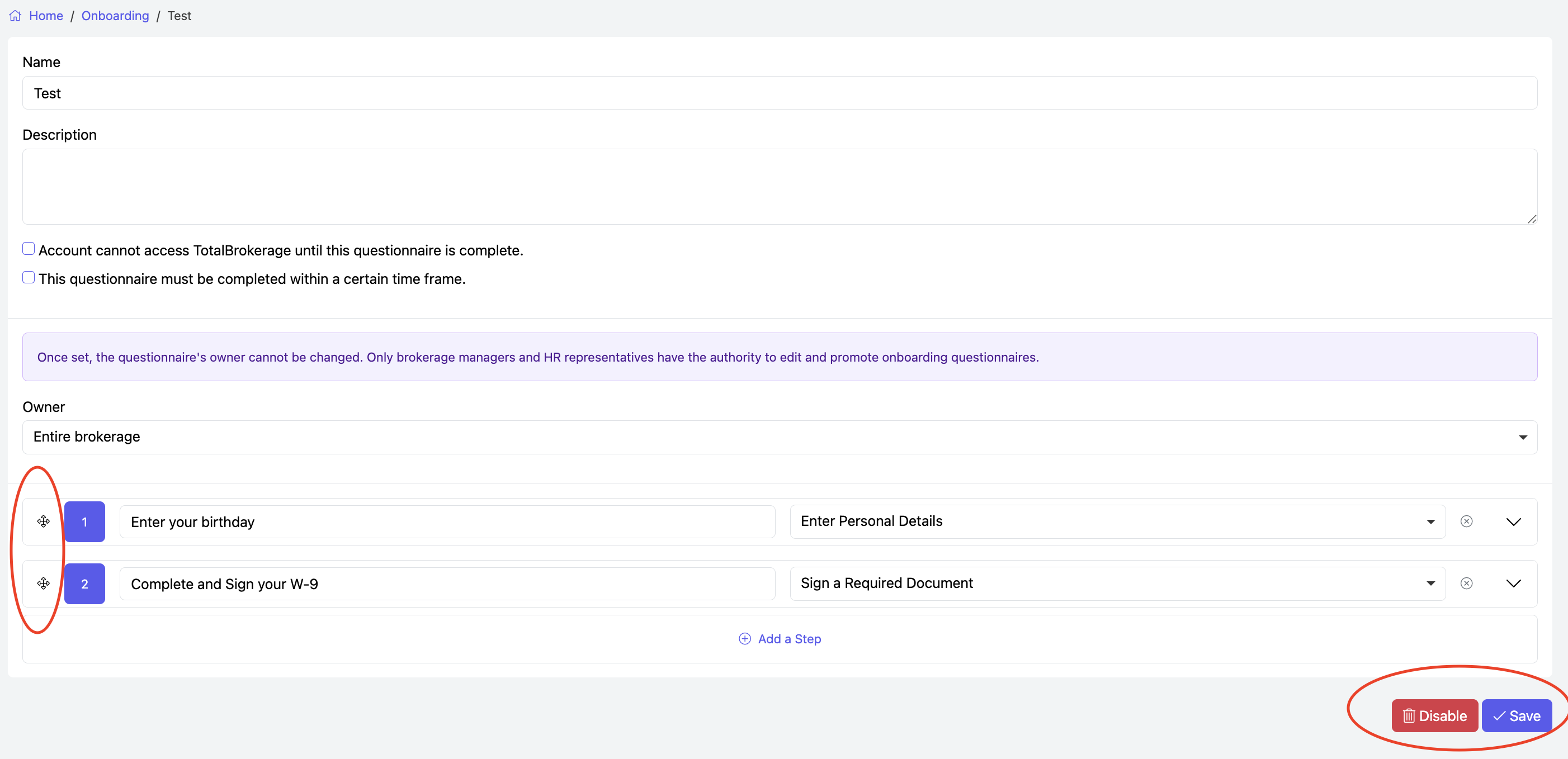 - OPTION: Choose whether the onboarding account can access TotalBrokerage before completing the questionnaire.