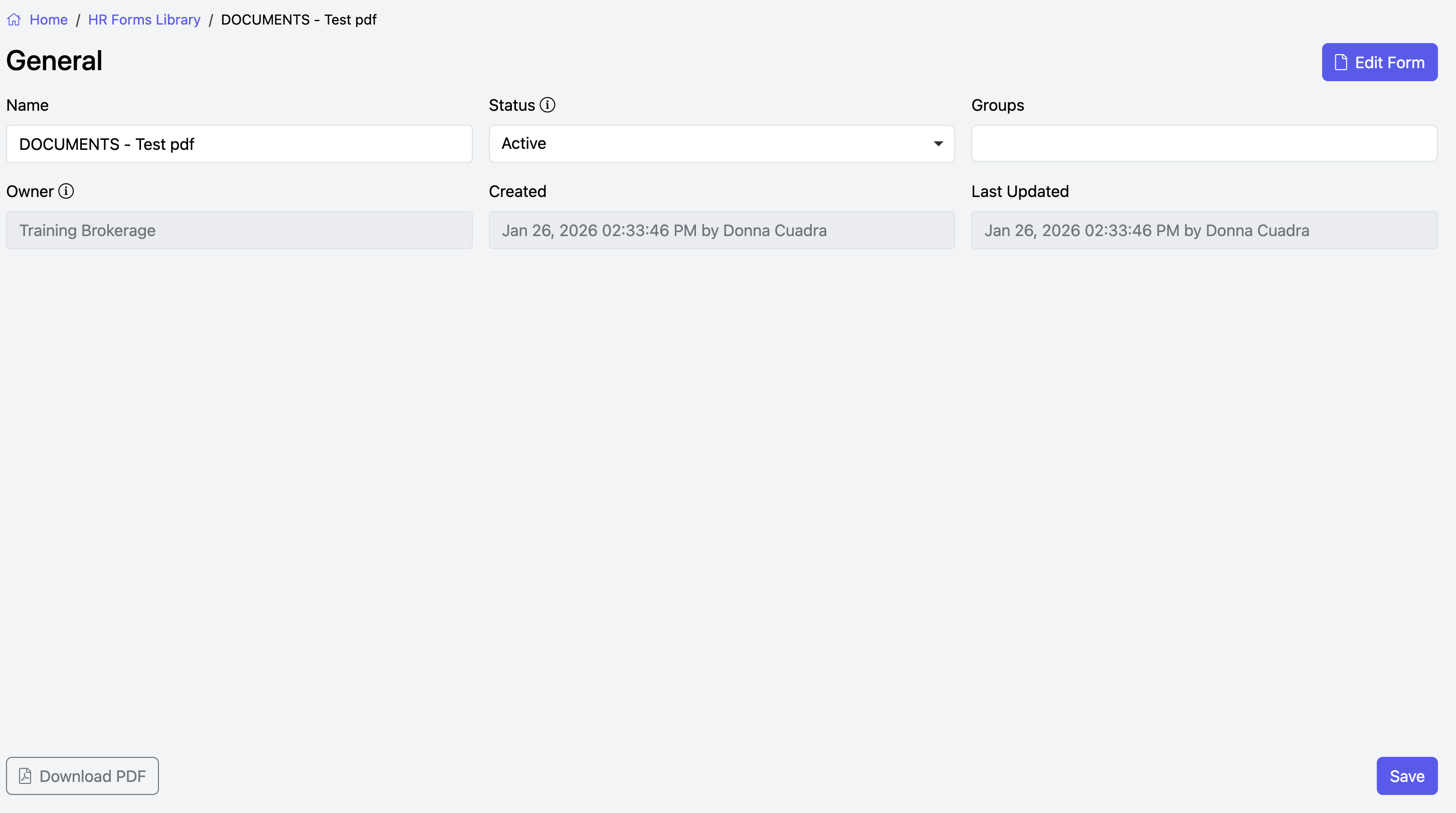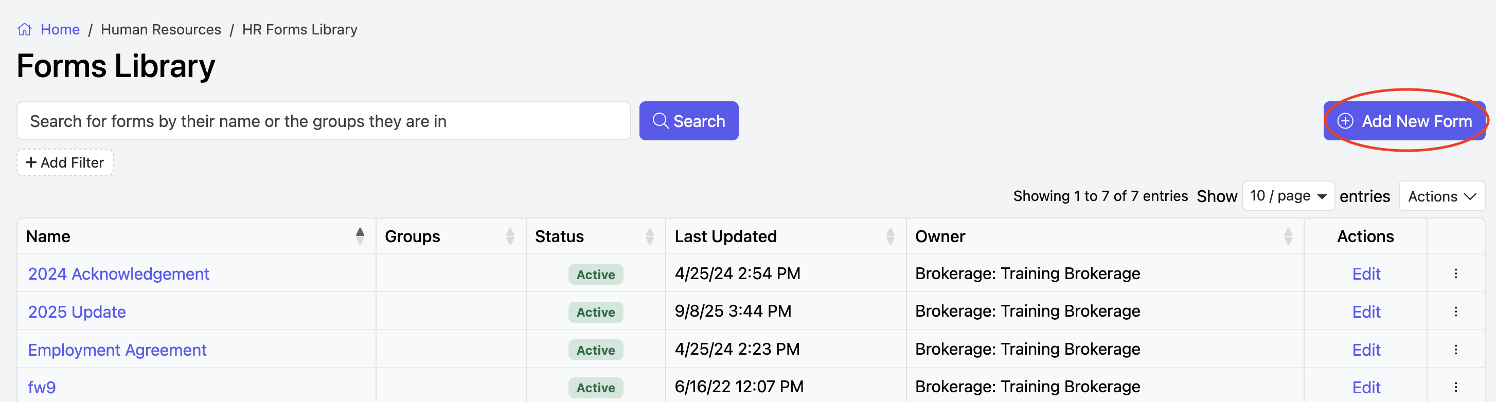 You can upload new forms to your HR Forms Library by navigating to Human Resources > HR Forms Library from your dashboard.