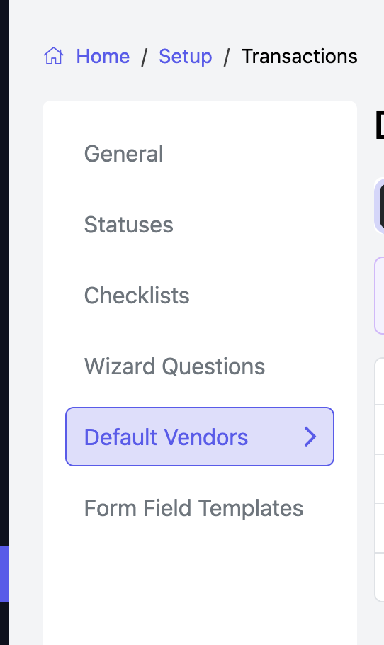 Here you can choose the number, and which vendors will automatically be a part of transactions according to the type of transaction (i.e. Seller, Buyer, Landlord, Tenant).
