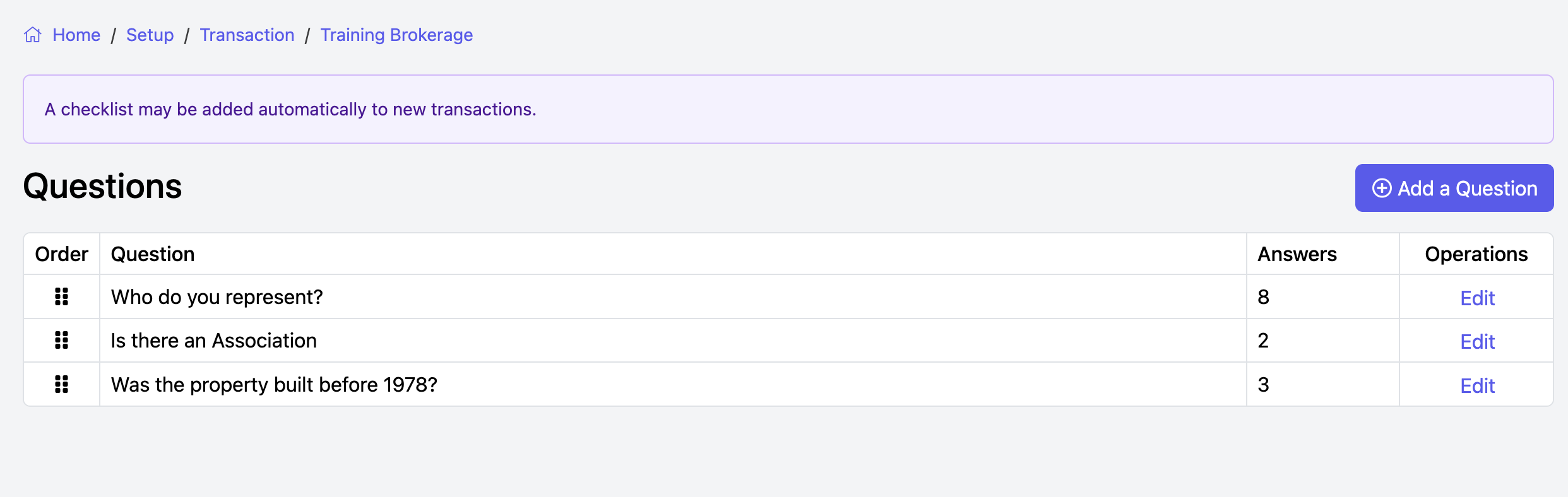 IMPORTANT: If you’ve set up transaction types in the 'Who Do You Represent' question within the transaction wizard, you must also assign these transaction types to your checklists.