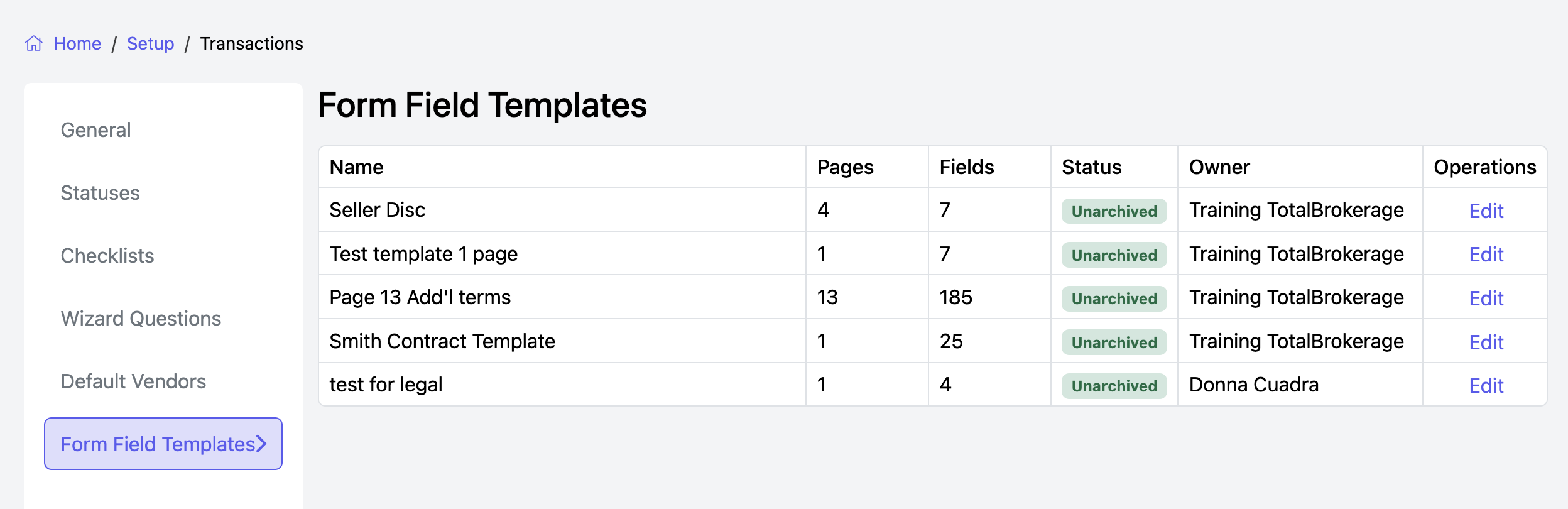Click Edit to rename or archive a template.