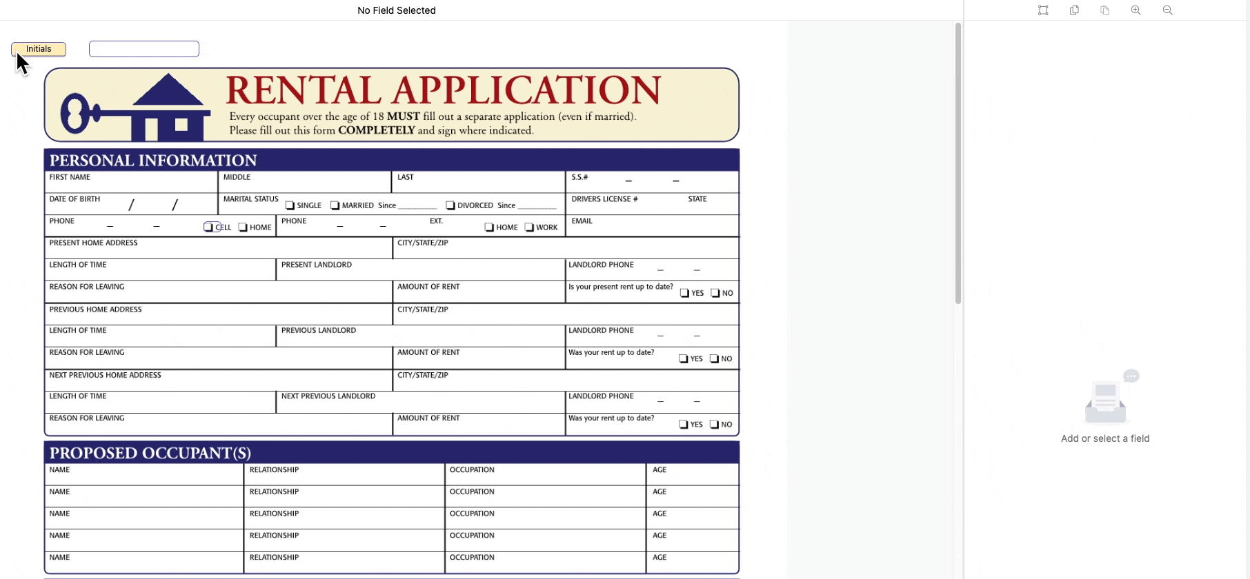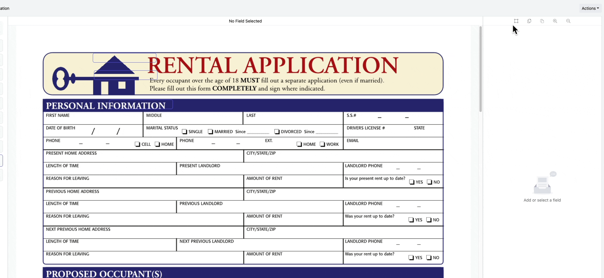 - Allows you to select the type of field to add to the document. You can drag and drop the field directly onto the document, or you can click Add Field.