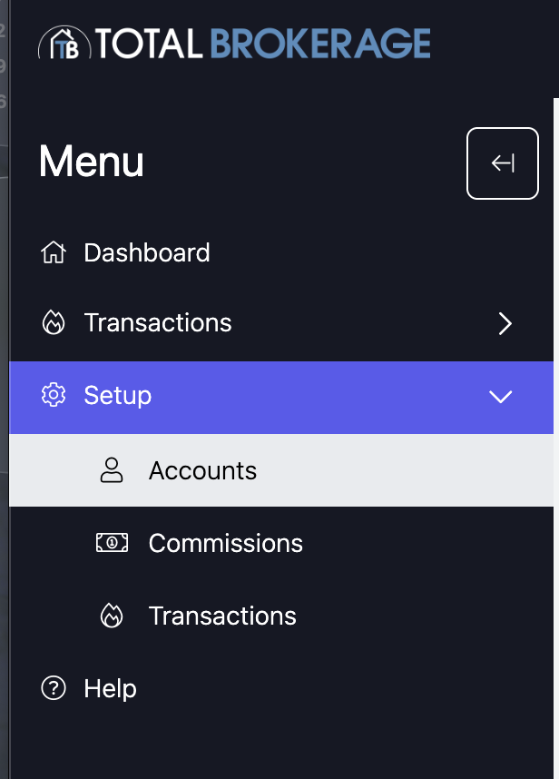SETUP- The setup tab is used to personalize your TotalBrokerage.
